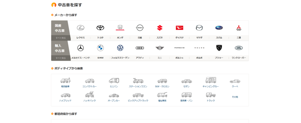 検索機能も使いやすく、条件を細かく設定して希望の車を見つけることができます。また、保証付きの車両なども多く掲載されており、安心して購入できる点も魅力です。ただし、サイト構成がやや情報多めで、初心者には少し複雑に感じる場合もあります。