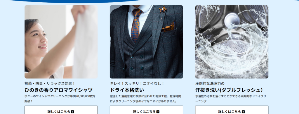 特にワイシャツなどの頻繁に洗う衣類については、価格面でのメリットが大きく、家計を意識する共働き世帯や一人暮らしの方に広く支持されています。また、店舗数が多く、生活圏内で利用しやすい点も強みです。