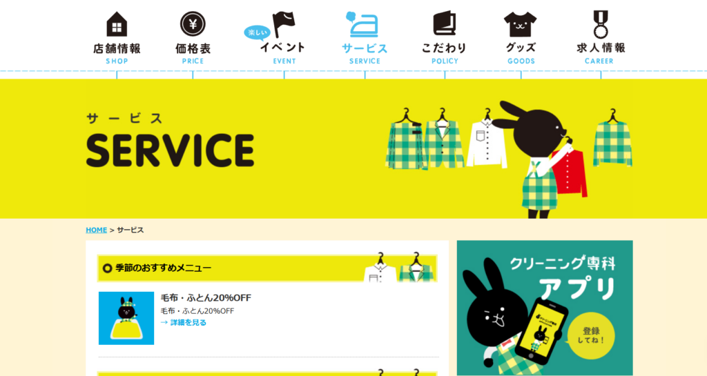 うさちゃんクリーニングは、東日本を中心に展開しているクリーニングチェーンで、低価格と安定した品質のバランスが特徴です。地域密着型の店舗運営により、地元ユーザーから高い支持を得ています。