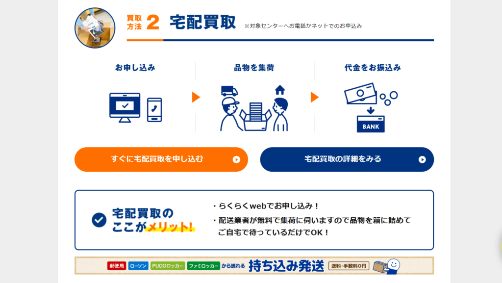 特に家事や育児で忙しい主婦の方にとっては、スキマ時間で手続きができる点が大きなメリットです。また、大手企業が運営しているため、初めて宅配買取を利用する方でも安心して申し込むことができます。