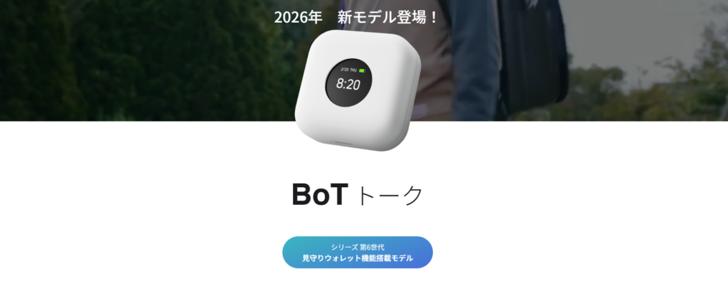 BoTトークは、通知のわかりやすさや、日常の見守りのしやすさを大切にしたいママに向いているサービスです。本体価格は5,280円(税込)で、月額はGPSプランが528円(税込)、**GPS&トークプランが748円(税込)**です。子どもの位置確認だけでなく、AIがふだんの行動を学習して、いつもの場所に着いたことや、普段と違う動きに気づきやすいよう工夫されています。