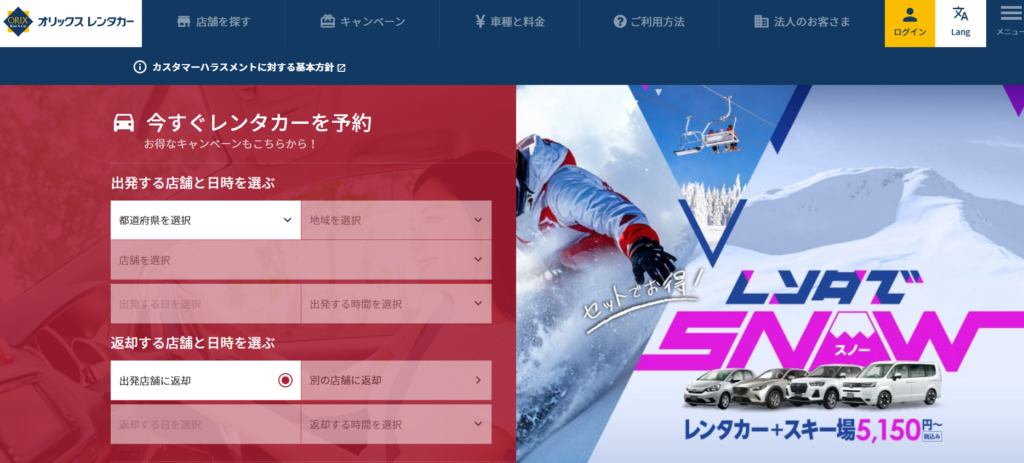 | 3位 | オリックスレンタカー | 4,500円〜 | 車種豊富 | 期間キャンペーン |
