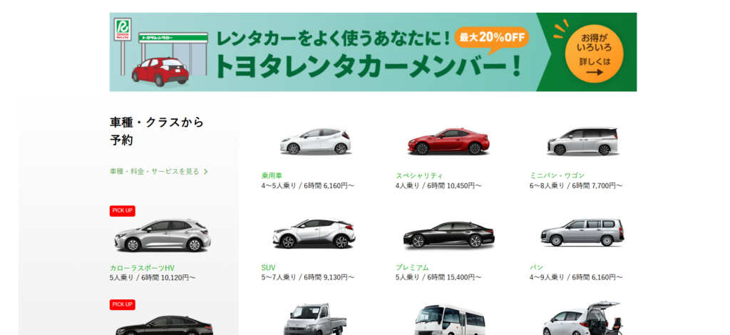 | 5位 | トヨタレンタカー | 5,000円〜 | 車両品質が高い | キャンペーンあり |