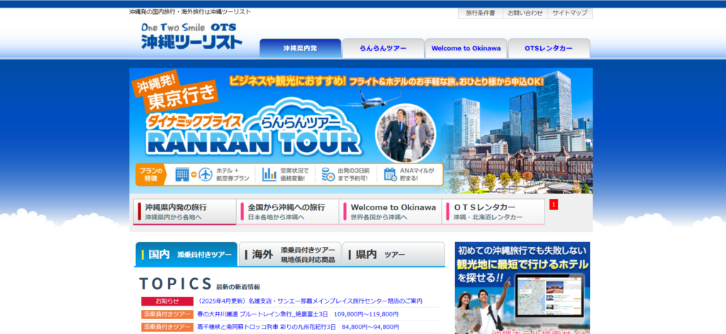 また、オンライン予約システムが使いやすく、ツアー検索や料金比較が簡単にできる点も魅力です。キャンペーンや期間限定セールなども頻繁に開催されているため、タイミングによってはかなりお得な価格で沖縄旅行を予約することができます。コストを抑えつつ沖縄旅行を楽しみたい方におすすめの旅行会社です。