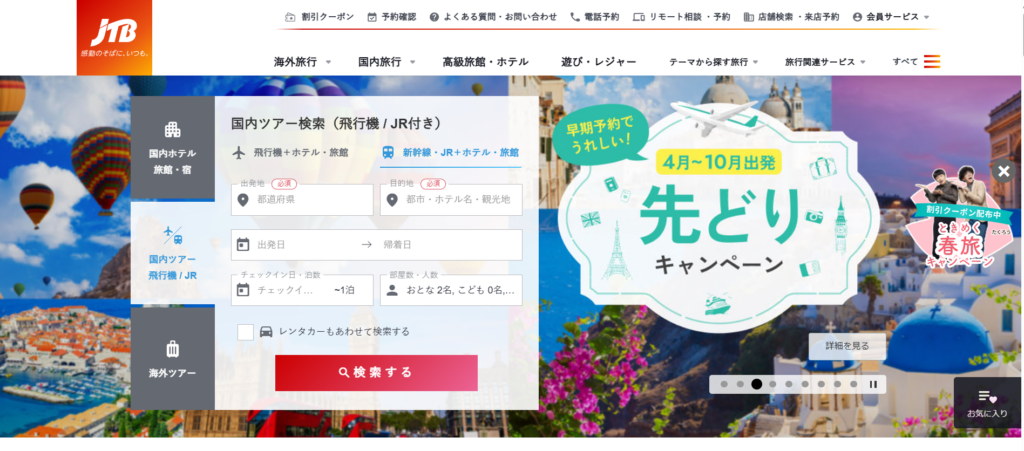 日本旅行は100年以上の歴史を持つ老舗旅行会社で、国内旅行から海外旅行まで幅広いツアーを提供しています。全国に支店があり、安心感のあるサポート体制が整っている点が大きな特徴です。